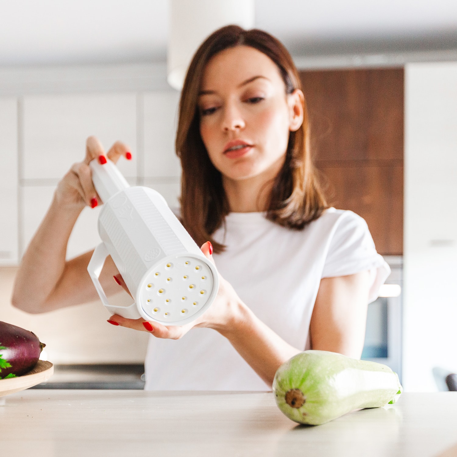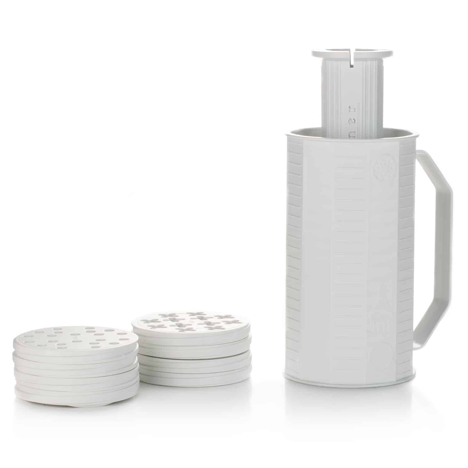 Stellen Sie im Handumdrehen leckere Nudeln selbst her! Egal ob Spätzle, Bandnudeln, Spaghetti, Schupfnudeln oder sogar Kroketten – mit der Börner Nudelmaschine ist das kein Problem. Einfach den Teig im Behälter anrühren, direkt ins kochende Wasser drehen & schon sind Ihre Nudeln fertig! Für größere Mengen empfiehlt es sich, den Teig in einer separaten Schüssel anzurühren und esslöffelweise in die Nudelfee einzufüllen. Mit den zugehörigen Einschubplatten können Sie 7 verschiedene Nudelarten herstellen.